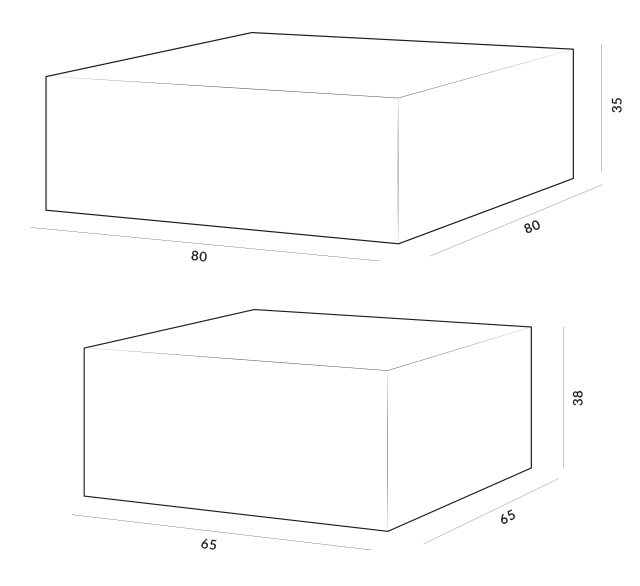 80 cm x 80 cm, wysokość 35 cm